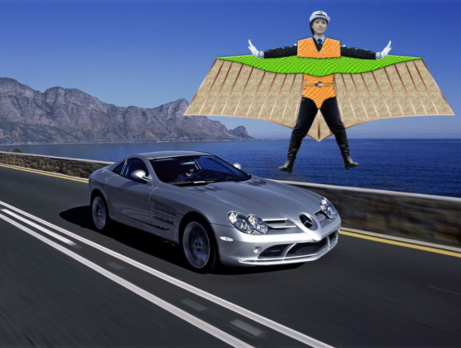 曾经不存在的飞机也存在了,曾经不存在的电脑也存在了,曾经只当成幻想的飞翔梦如今也可以梦想成真了。 原理很简单:水有浮力,人可以在水中游,如果加个小气襄就更加轻松了。空气的浮力虽然比水的浮力小很多,但同样可以浮人,所需要的就是一对足够宽的翅膀。为什么一定要用翅膀呢?因为翅膀既可以直升又可以滑翔、既可以机动也可以人力,用翅膀飞翔的运动量其实跟登山和游泳的动动量差不多,甚至还可以更轻松。翅膀还可以做成大型多人机动或人力飞行器,甚至可以做成巨型载体。造形可以千变万化,绝对能满足不同人群的喜好。 别说有飞机谁还用这玩意儿,那亿元以上的东西,咱老百姓只能说说而已。真正能像自行车一样普及应用的就是这个“飞行衣”。 之所以讫今为止还没有这对翅膀,第一是安全问题,第二是经济效益问题,第三是现代人设计思路已经局限于现有机械套路而没有很好的创新。古人不是不会做翅膀,冷兵器时代假如漫天飞着鸟人,那是很恐怖的,所以安全是个很大的问题。近代的飞翔梦都寄托到飞机上了,除了安全问题外主要原因还是经济效益,因为掌握飞机的人可以用飞机赚很多钱,而鸟衣设计出来很快就会被盗版传播,发明人并不会得到多少好处。现代的鸟人设计思想局限在已知的机械原理套路上而并没有很好地采纳生物力学原理,以至于无法应用。 我之所以大胆发布此文,一是很想自由飞翔,二是自己不具备生产条件,三是如今的电子技术已经可以全空域监控足够保障鸟人时代的安全,四是我不在乎多少好处。希望不久的将来,人人都可以自由飞翔。你别说人不如鸟! 此图未含真实翅膀设计,仅供观赏 至于翅膀设计原理,当然是仿鸟翅机械原理,但是鸟翅原理略显复杂,最方便的就是双折合翼伞式扇动原理从腿脚发动,手臂可以掌扶双翅以控制方向,必要时不动腿脚仅用手臂也可以扇动翅膀,材料初步可以用合金T形钢加编织化纤布料制做,翅膀宽度可根据鸟的翅膀面积和体重的比例加大定制,相信有机械设计头脑的人不难理解。 主体可做成钢架连体背心,背心后有滑轨,滑条经腿脚蹬踏而上下滑动带动翅膀上下扇动,这样扇翅膀就相当于跑步。手臂伸展85%时手可以抓扶翅膀侧把手以扇动翅膀,如果只掌握方向则只需抓住翅膀前把手。停下时翅膀上举垂直折合一半再伞形合拢体积应该不会太大以便于行走,整个翅膀重量大约10到20公斤,肯定比一个行军战士带的东西轻得多。暂时只能说原理大概如此,具体结构和参数还要在实践中才能证明。 如果具体做法不清楚可以问我,随时恭候。 ![]() ![]() 现在想象一下: 古人骑马、坐马车,近代人骑自行车、坐汽车,现在满街都是私人轿车,下一个时代满世界都是鸟人! |